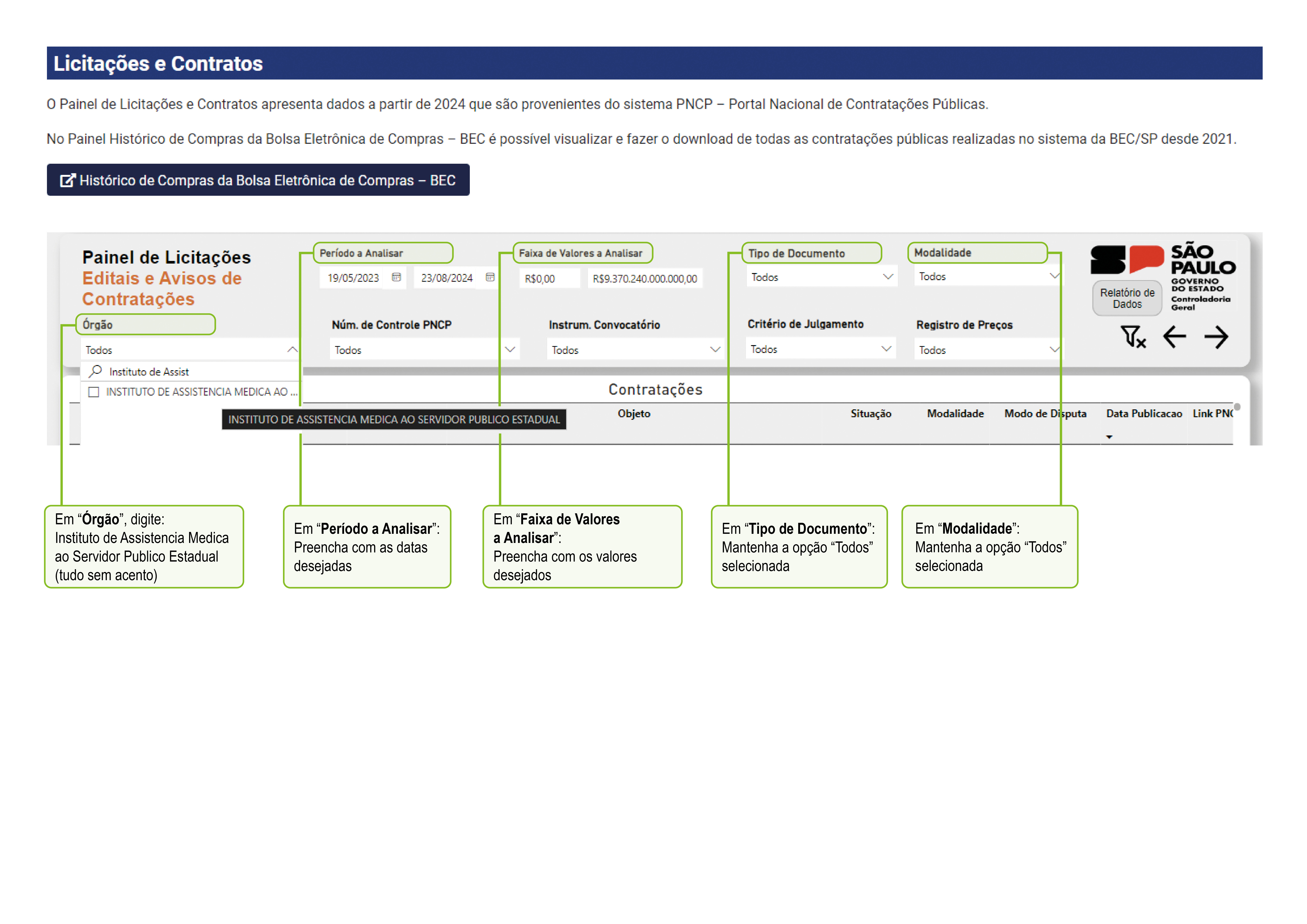 O tutorial abaixo mostra como consultar rapidamente as licitações promovidas pelo Instituto de Assistência Médica ao Servidor Público Estadual (Iamspe).